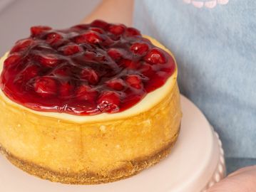 Our signature creamy flavour, the top smothered in our cherry sauce with a classic graham cracker crust.
